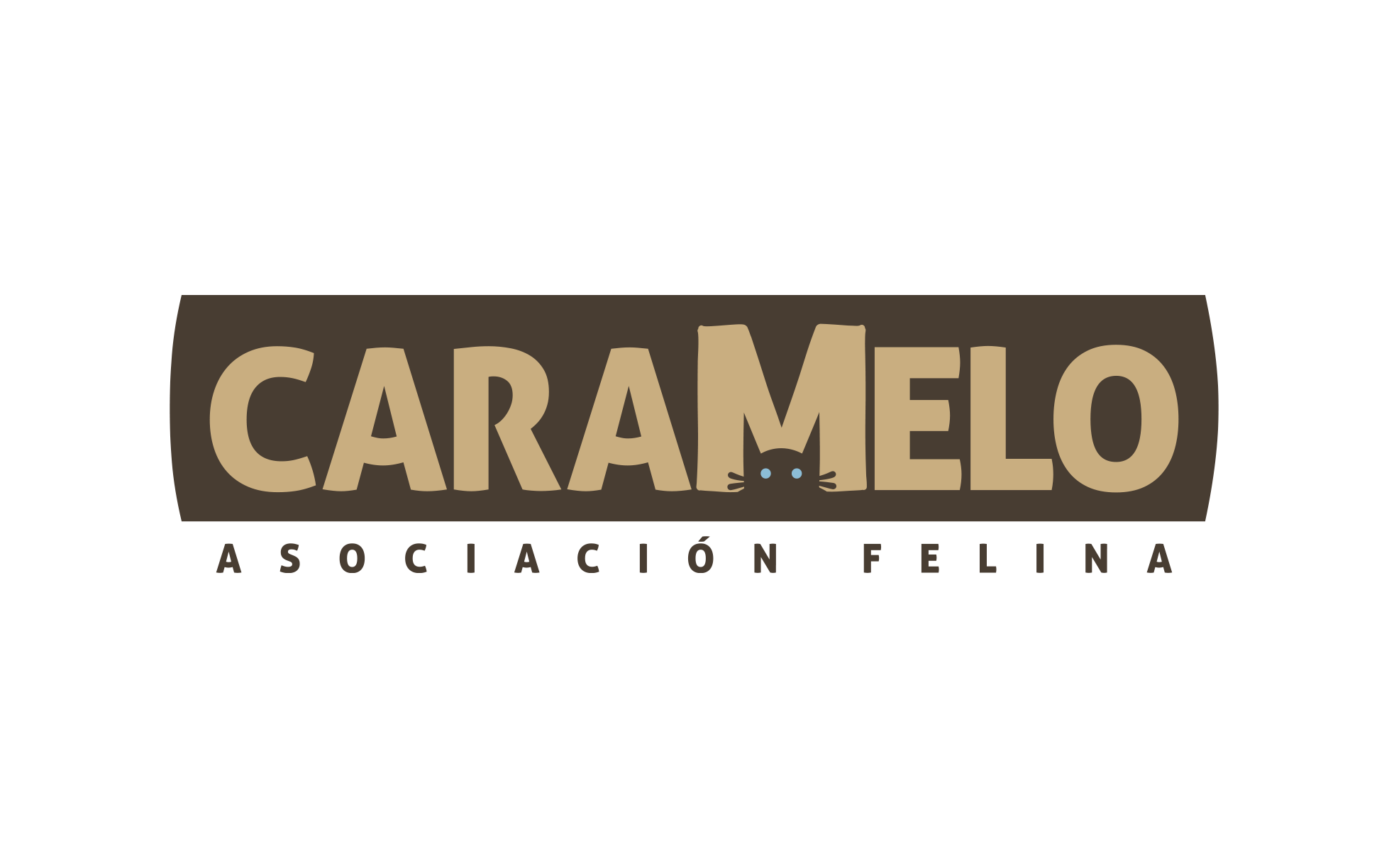 El detalle visual más característico del logotipo es la «M», que incorpora la cara de un gato, con sus ojos azules y bigotes, de forma sutil pero reconocible dentro de la tipografía. Esta integración no solo aporta un toque único, sino que hace referencia directa a la esencia de la asociación: los gatos. El gato, con sus ojos atentos, simboliza el cuidado, la atención y el amor que Caramelo dedica a los felinos, reflejando su compromiso con la protección animal.